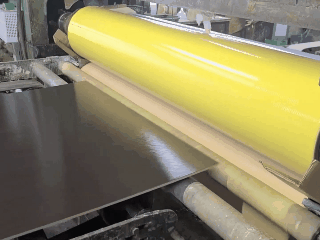 輸送時や加工時のキズ防止の為、表面をフィルムでマスキングします。